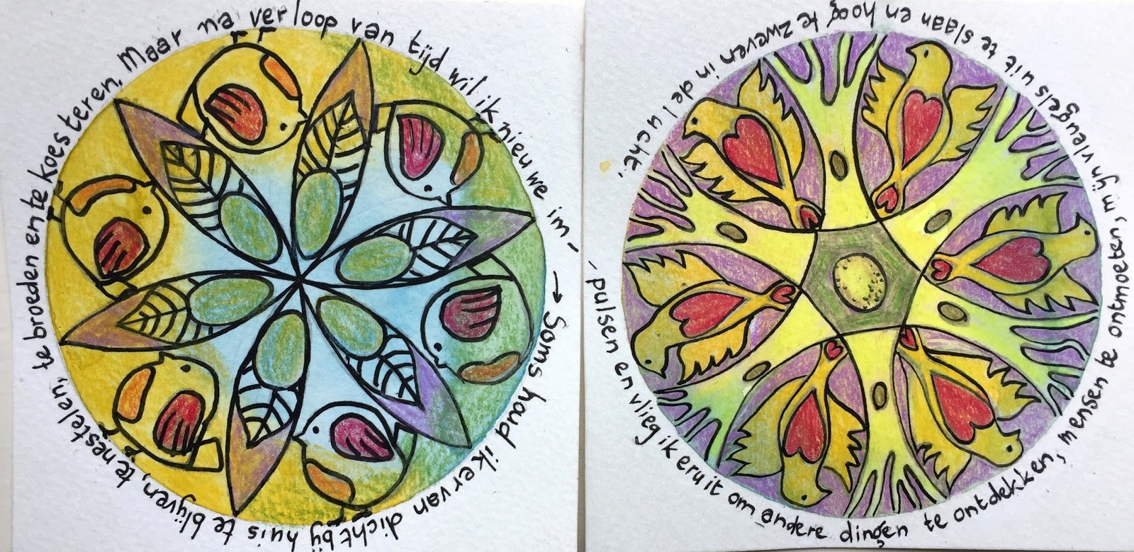 Teken een cirkel met een passer en speel wat met dunne verf erin.