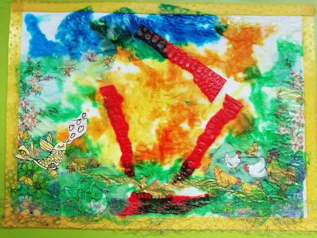 Hierna met verdunde acrylinkt deze 'mei-explosie' gemaakt.